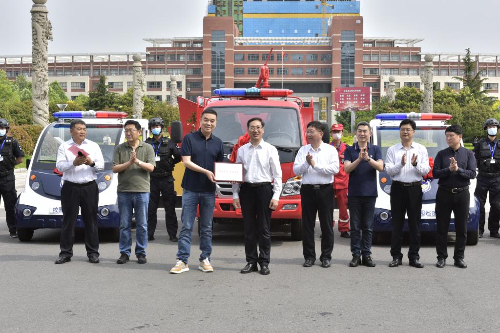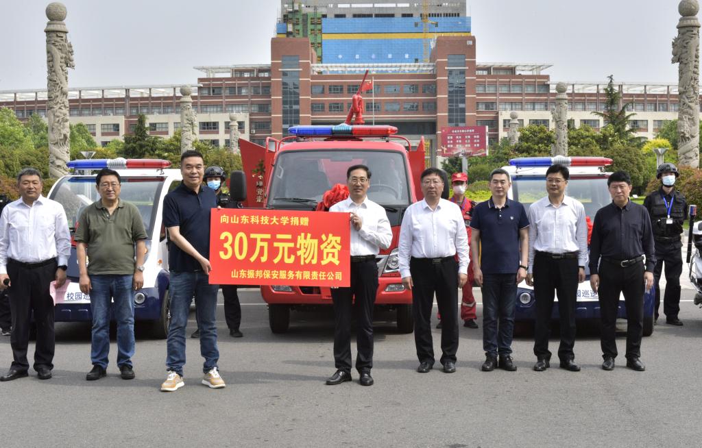 6月1日,在易游在线70周年华诞之际,山东振邦保安服务有限责任公司向学校捐赠校园巡逻车、消防车等价值30余万元的安防物资。
