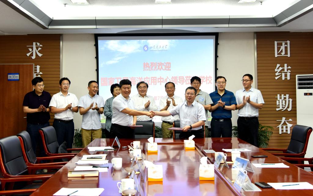 王其茂对学校确立明确目标并稳步实施表示赞赏,他介绍了国家卫星海洋应用中心的基本情况和近年在海洋环境方面的相关探索。王其茂表示,希望以此次签约为契机,继续发挥双方在人才培养、科学研究、学生实践等方面的优势,将政产学研用推向新的高度。
