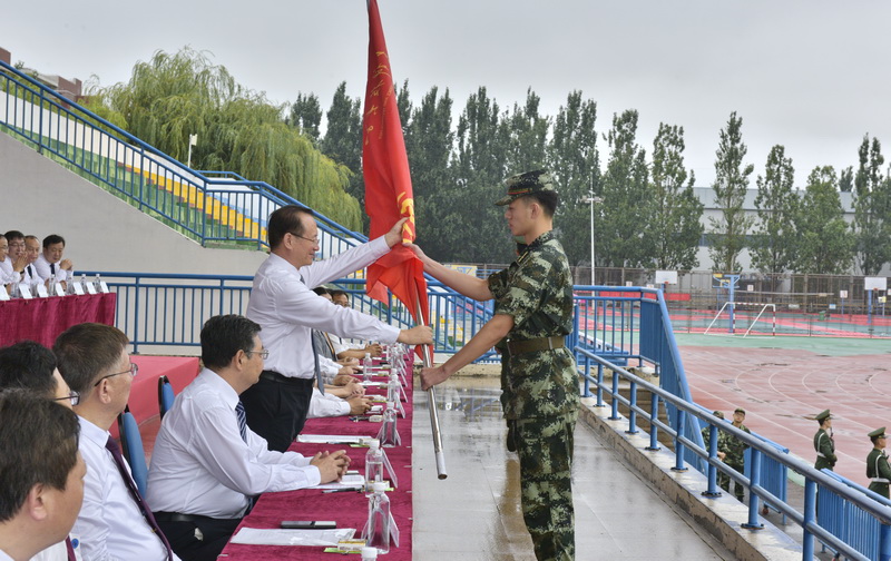 罗公利向军训旅授旗