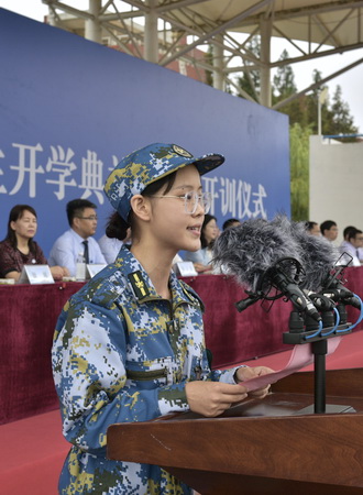 教师代表杨俊茹、军训教官代表徐越发言