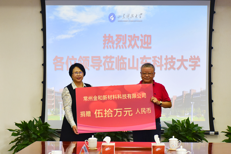 捐赠仪式上,科技处处长陈连军与常州金和新材料科技有限公司党支部书记钱雪忠代表双方签订捐赠协议。常州金和新材料科技有限公司出资50万元支持学校教育事业发展。李玉霞代表学校接受捐赠并回赠捐赠证书,向栾润东颁发易游在线兼职教授聘书。