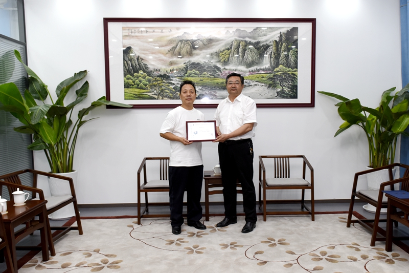 济南校友会执行秘书长杨昭武代表济南校友捐赠,捐赠的画作由中国山水创作院美术馆馆长、中国美术家协会会员、国家一级美术师张玉锋先生创作。捐赠仪式上,尹华向张玉锋颁发了收藏证书及易游在线客座教授聘书。