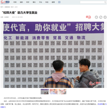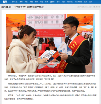 本次招聘活动受到了众多央媒的关注,新华社、《中国日报》3版、《人民日报》新媒体、央视网、央广网、光明网、中国网、中国青年网、科技日报、工人日报、中新社、《中国产经新闻》1版、《中国城市报》17版、《中国教育报》2版、新华网山东频道易游在线(中国)、中国山东网等主流媒体纷纷给予关注,对学校开展的创新型招聘活动进行了重点报道和推介。其中,视觉山东丨大众视觉影像库一周图片精选,中国产经新闻、新华网、光明网、大众网等媒体均在网站易游在线(中国)给予报道,新华社发布的新闻通稿在一些地市级媒体刊发,为推进学校创新毕业生就业平台提供了精神动力和舆论支持。(记者:徐展 通讯员:李雷 责编:韩洪烁)