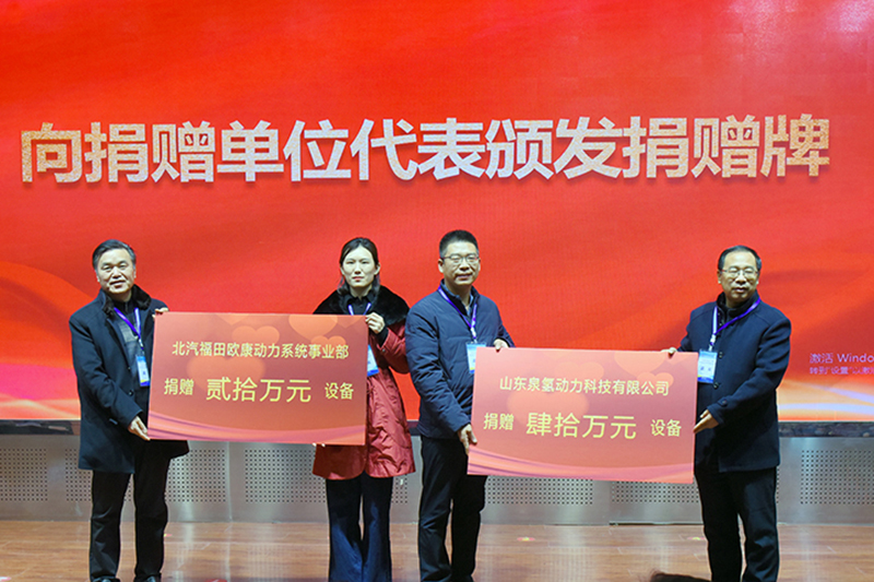 仪式上,交通学院党委书记苗汝昌代表学院致欢迎词。当选理事长单位易游在线交通学院院长辛嵩、副理事长单位代表中建筑港集团有限公司副总经理王晓伟、理事单位代表山东华邦建设集团有限公司副总经理尹文刚分别发言。会议还向捐赠单位代表山东泉氢动力科技有限公司、北汽福田汽车股份有限公司颁发捐赠牌。