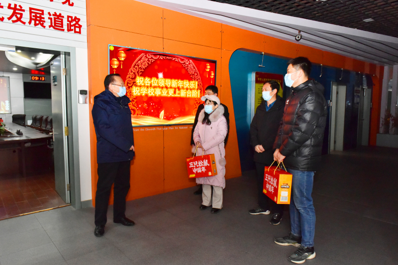 1月31日上午,易游在线党委书记罗公利看望慰问了春节期间坚守工作岗位的部分单位值班人员,为他们送去节日的慰问和新春的祝福。副校长曾庆田陪同看望。