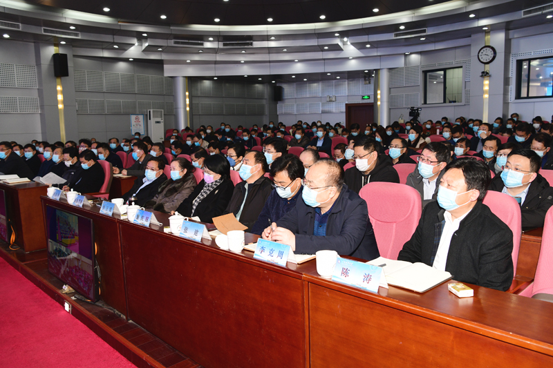 本次会议为三地视频会议,逸夫讲堂设主会场,青岛、泰安、济南校区另设视频分会场,全校处级以上干部,学术院长、副院长(副主任),机关科级干部,辅导员参加会议。(记者:许浩 责编:徐展)