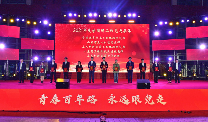 2021年,全校青年师生在创新创业、社会实践、志愿服务等领域开拓进取、担当作为,用实际行动践行“请党放心,强国有我”的青春誓言,涌现出了“全国优秀共青团员”“山东省优秀共青团干部”“山东省五四红旗团支部”“山东省青年志愿服务先进个人”“全国煤炭行业五四红旗团委”等一批先进集体、先进个人,学校多个集体和个人获上级团组织表彰。校党委常委、副校长曾庆田,校党委常委、宣传部部长李克周,校党委常委、组织部部长陈涛,学校党群部门负责人分别为2021年度学团研工作先进集体、先进个人颁奖,激励广大青年学习先进榜样,激发奋进力量。