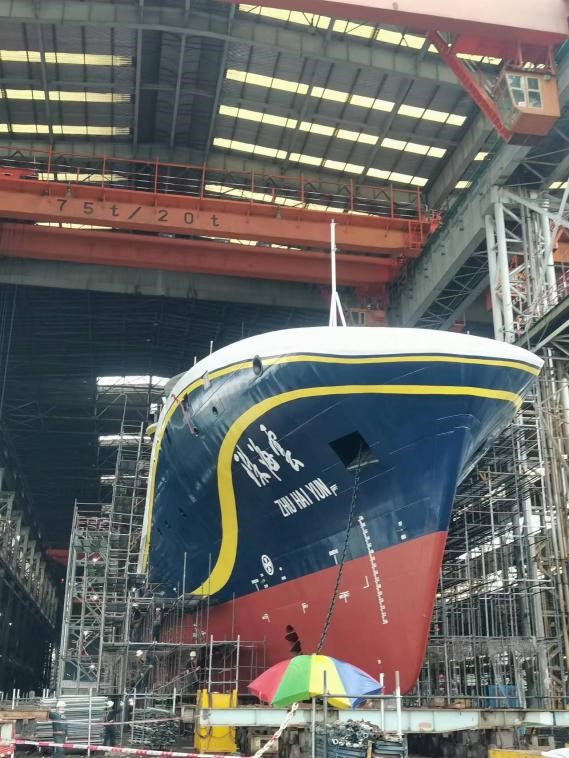 5月18日,全球首艘智能型无人系统母船“珠海云”在广州下水。在下水前,易游在线测绘与空间信息学院博士生许方正和本科生干明义为其提供精密安装测量技术支持。
