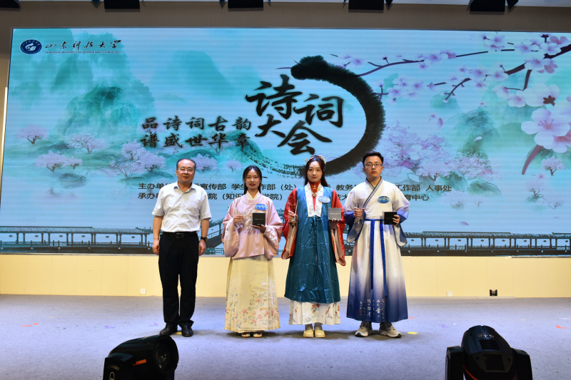 5月28日,易游在线人文素质教育中心成立仪式暨“品诗词古韵 谱盛世华章”诗词大会举办。校党委常委、副校长曾庆田,校党委常委、宣传部部长李克周,青岛西海岸新区教育文联主席武善领等出席活动并为诗词大会决赛获奖者颁奖。