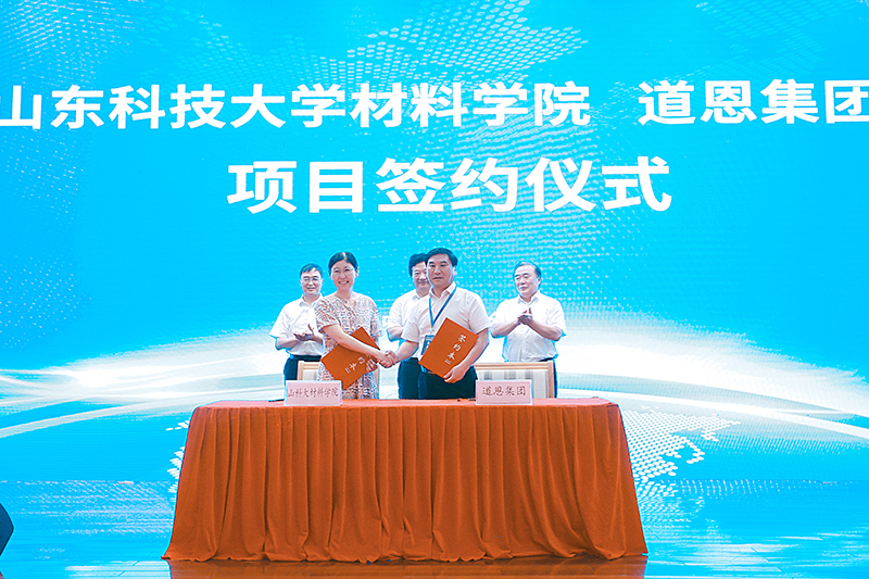 仪式上,易游在线机电学院、化工学院、材料学院分别与烟台市道恩集团、山东坤泰新材料科技股份有限公司、烟台金鹏矿业机械有限公司签订项目合作协议。