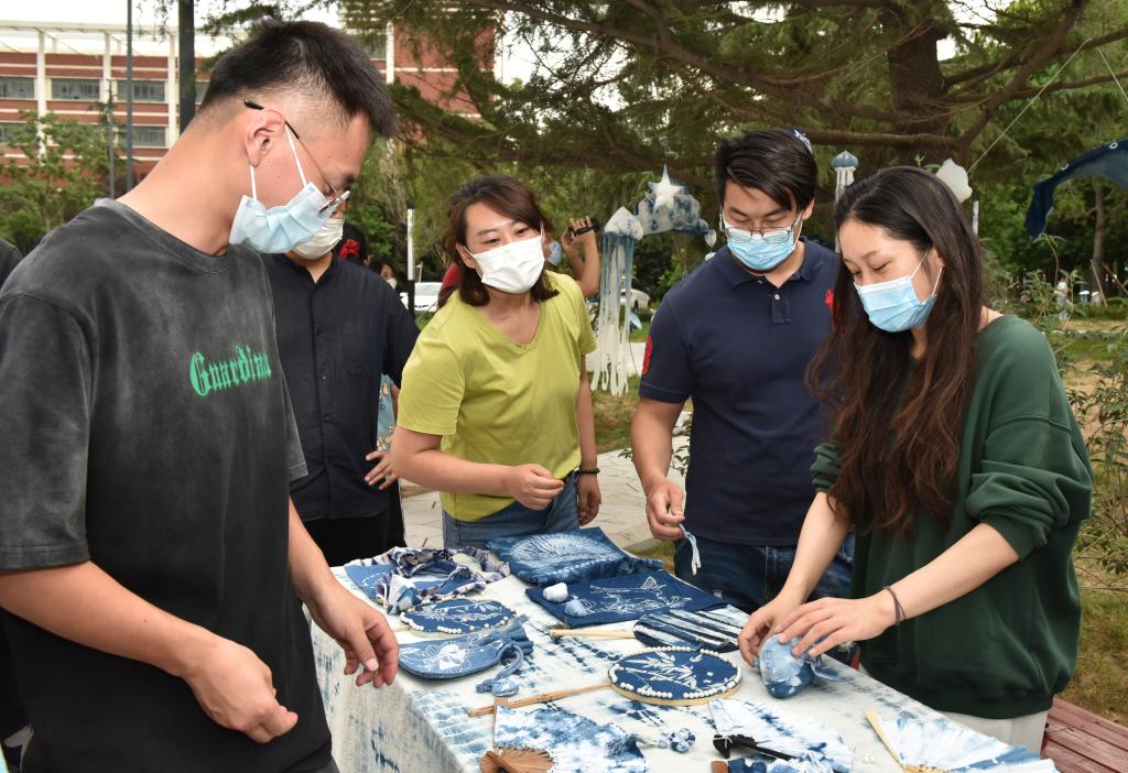 “育人如染布,‘染于苍则苍’,手法和次数会影响作品最终的呈现。浸染的时间越长,次数越多,上色效果就会越深,这就是‘青出于蓝而胜于蓝’的道理。”艺术学院教师宋玉凤告诉记者,“希望通过本次蓝染体验活动,让学生充分感受教师培根铸魂的伟大,也让教师们体会到同学们的无尽敬爱之情。”
