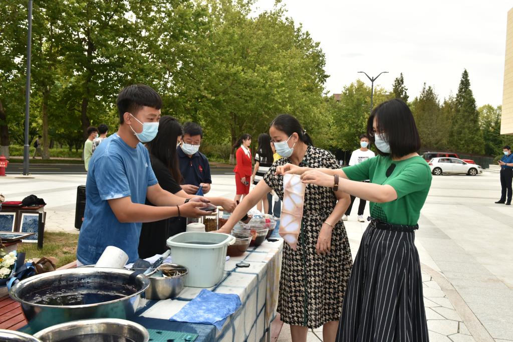 活动现场,学生代表向“最美教师”“教书育人楷模”献花,与他们一起制作蓝染方巾,为教师们奉上最美的节日祝福。山东省中华优秀传统文化传承基地“传统蓝染工艺”的师生在活动现场布置了不同主题的蓝染作品,吸引师生们驻足欣赏。