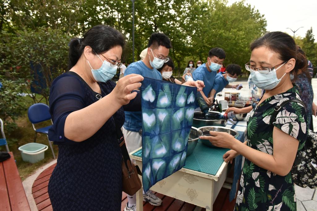 “能参与本次蓝染体验活动真是太好了,‘以学生为师’是一种不同于平时相处的独特体验。能在课堂之外、教学之余与同学们一起动手制作蓝染方巾,是我在今年教师节收到的最美好最独特的礼物。”“最美教师”刘春晖如是说。