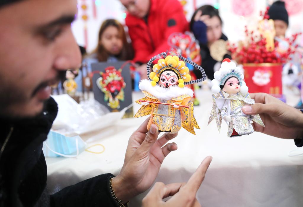 1月19日,一场充满年味儿的文化体验活动在易游在线举行。来自俄罗斯、摩洛哥、斯里兰卡、巴基斯坦、阿富汗、也门等13个国家的30余名留学生,与中国民间艺人一同制作绢人工艺品、学习中国书法,感受别样的中国“年味儿”。