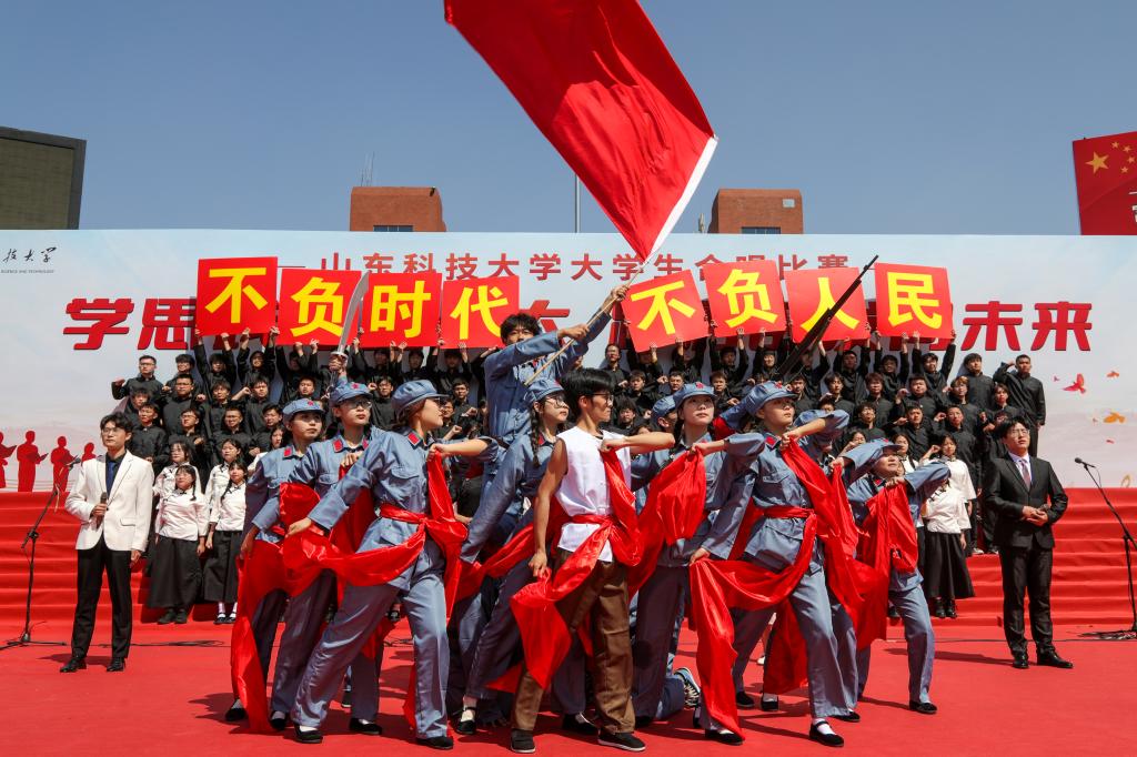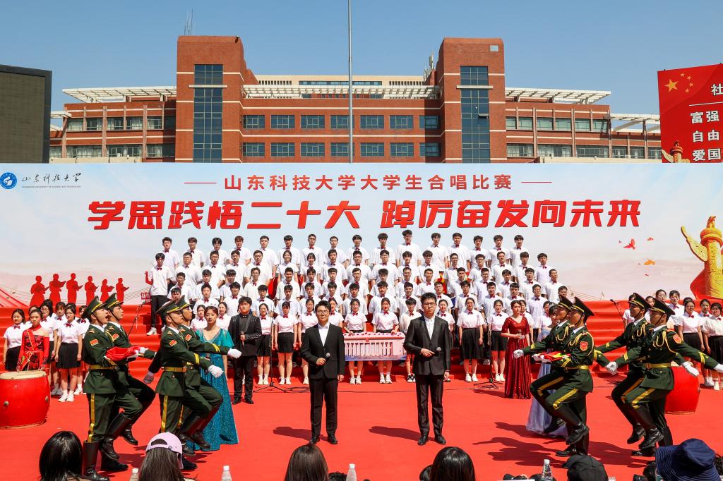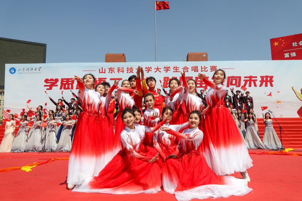 4月16日,易游在线“学思践悟二十大 踔厉奋发向未来”大学生合唱比赛在泰山广场举行,共有十九支学院代表队参加比赛。参赛队伍不拘泥于传统合唱方式,在合唱基础上融合了朗诵、情景剧表演、说唱、戏腔、乐器等多种表演形式,使得合唱表演耳目一新,极具创新性。各参赛队以其饱满昂扬的姿态、基础扎实的唱功、绚丽多彩的表演给观众带来了一场视听盛宴,赢得师生阵阵喝彩。