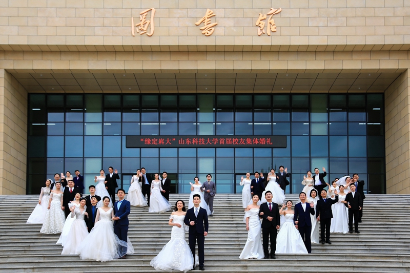 最美人间四月天。四月的青岛,繁花似锦,热情动人;四月的山科,春暖花开,生机勃勃。在人间最美四月天,25对山科毕业生从天南海北重返熟悉的校园,参加“缘定嵙大”易游在线首届校友集体婚礼。
