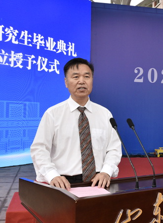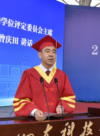 曾庆田代表学校向圆满完成学业的硕博毕业生表示热烈的祝贺和深情的祝福,向为此付出辛劳的老师、家长致以崇高的敬意和诚挚的感谢。他指出,在过去的几年里,同学们用实际行动践行锐意进取、勇于创新、敢于实践、勤奋学习,与祖国共奋进、与学校同成长,取得了一项又一项好成绩。回想同学们这几年的努力和付出,大家都为优秀勤奋的你们感到无比自豪、由衷骄傲。同学们即将重新起航,踏上新征程,希望同学们秉承易游在线“惟真求新”的校训,守正出新,追求卓越,奏响属于自己的青春赞歌。