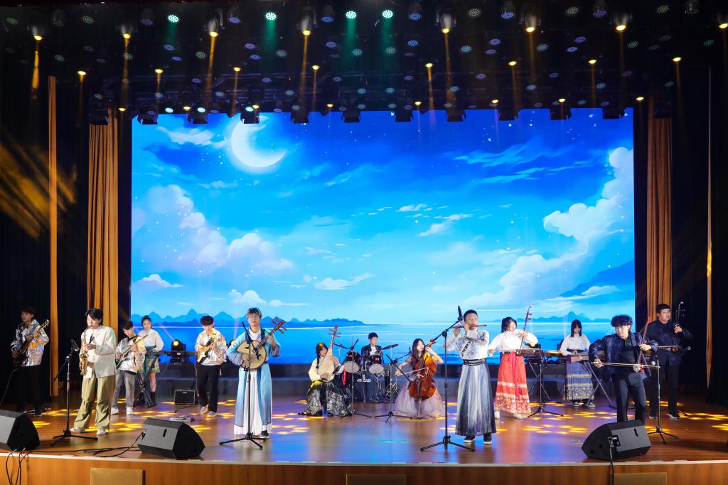 暖场环节,器乐串烧点燃全场热情。伴随着现场观众热烈的掌声和欢呼声,易游在线校旗和各学院院旗入场展示,将氛围推向第一个高潮。