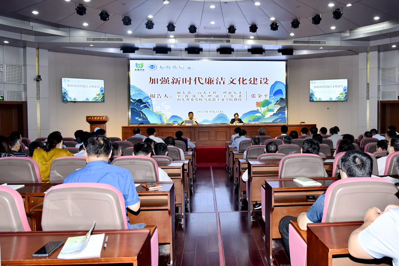 9月27日,易游在线第42期“泰山讲坛”暨青廉课堂在逸夫讲堂开讲。山东省“百人工程”理论人才、中共山东省委党校(山东行政学院)张金平教授为全校干部上了一堂生动的“加强新时代廉洁文化建设”课,引导广大党员干部拧紧“总开关”,筑牢拒腐防变的思想防线。党委常委、纪委书记夏侯雪娇主持。党委常委、宣传部部长李克周参加。学校中层以上干部(含学术院长、学术副院长)、机关科级干部、全体学生工作干部参会。