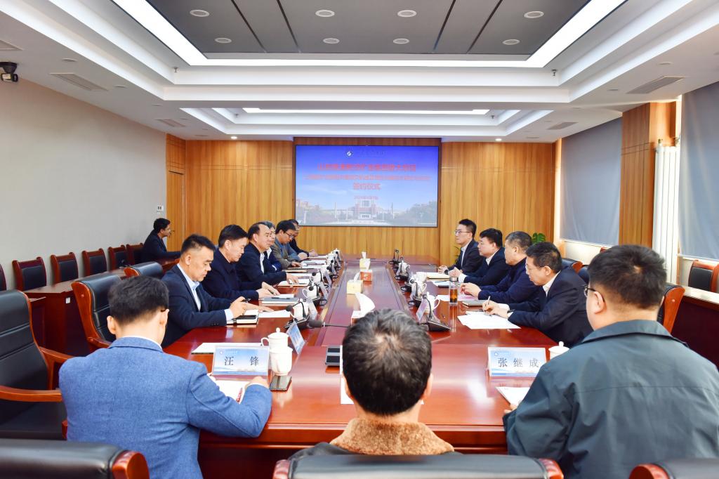 签约仪式前,校党委书记罗公利、校长曾庆田会见了山东能源新汶矿业集团党委书记、董事长王乃国一行。副校长薛庆忠陪同会见并主持签约仪式。