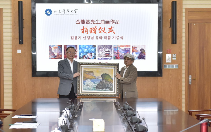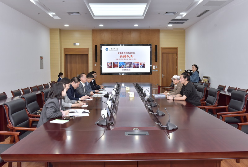 4月19日,学校在图书信息中心举行金龙基油画作品捐赠仪式。校党委书记罗公利,韩国庆尚国立大学金振国教授出席仪式。