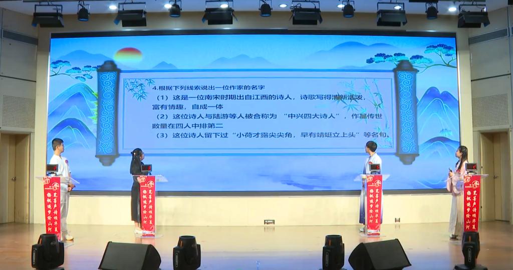 易游在线诗词大会始于2022年,通过开展诗朗诵、歌曲、诗词大赛等特色主题活动,以赛促学,全方位彰显中华文化魅力,推进文化自强自信。本届诗词大会自五月初开始,13个学院百余名诗词爱好者报名参赛,经过诗词文化笔试和飞花令角逐,来自计算机学院、自动化学院、化工学院、海洋学院、文法学院的8名同学晋级决赛。决赛通过“初韵踏浪·悠然山水”“潜龙弄云·风采山科”“辉煌岁月·诗颂山河”三个环节,分别决出大赛四强、前两名和冠亚军。