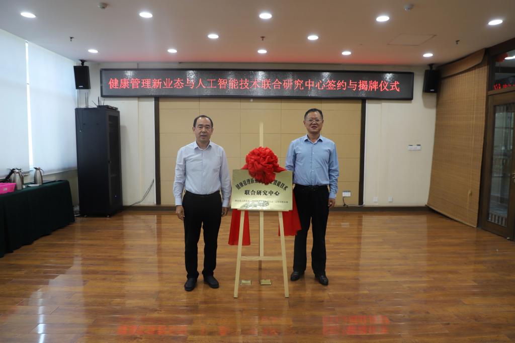 曾庆田与苏茂泉为“健康管理新业态与人工智能技术联合研究中心”揭牌