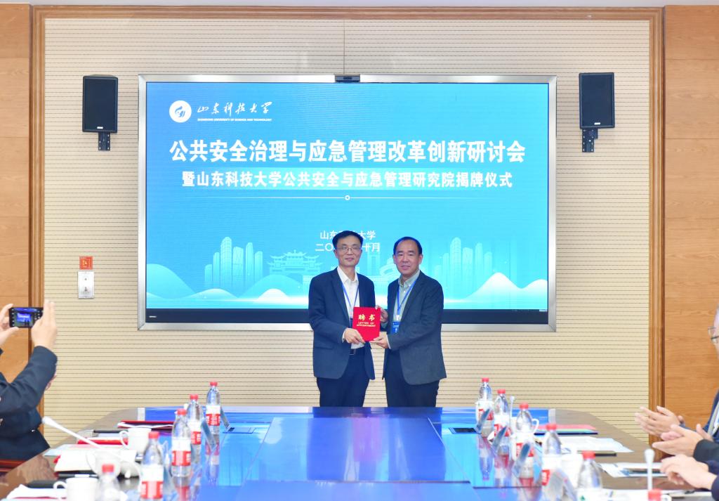 马宝成和曾庆田共同为易游在线公共安全与应急管理研究院揭牌。曾庆田向学校兼职教授及研究院院长、执行院长颁发了聘书。