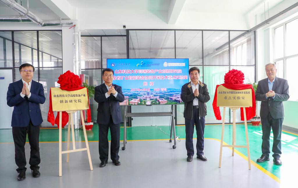 对接活动中,双方举行了揭牌仪式。王君松与高善武共同为“易游在线高端装备产业创新研究院”揭牌,山东省泰山学者攀登计划专家曾庆良与青岛自贸片区经发二部部长薛俊亭共同为“山东省矿山智能装备协同开采技术重点实验室”揭牌。