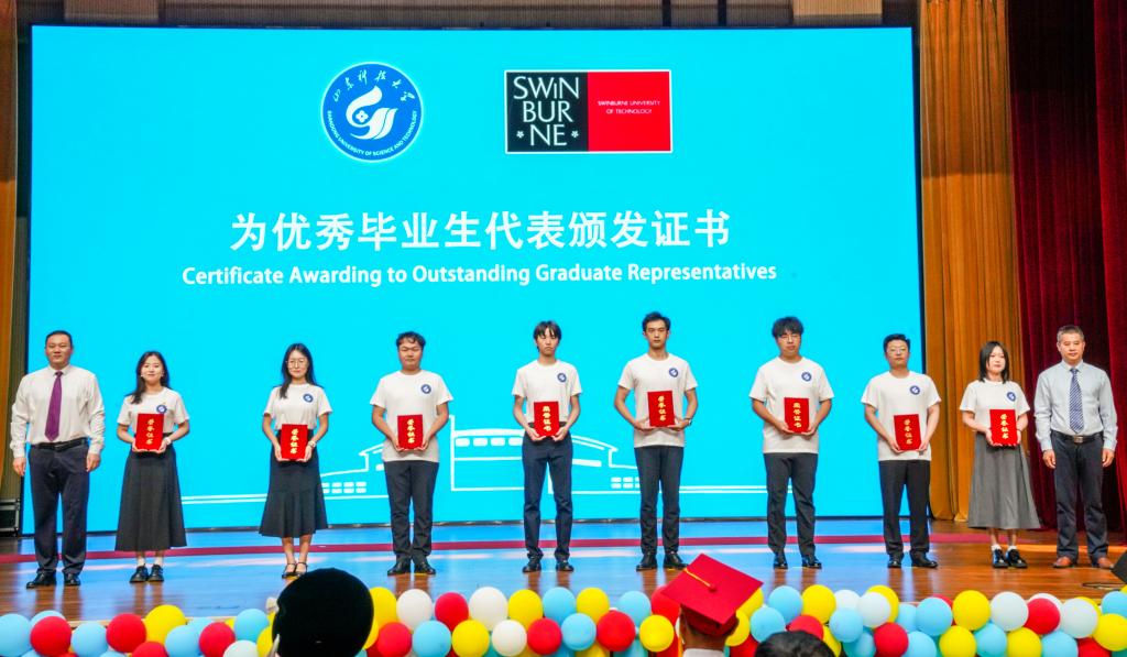 曾庆田强调,斯威本学院首届毕业生见证了学院的蓬勃发展,也实现了个人的成长蜕变。面对即将远行的学子,他深情寄语,一要厚植家国情怀,弘扬“留学报国”传统。无论身处何方,都要时刻关注国家发展需求,坚决维护国家利益,让“留学报国”的红色传统绽放更加耀眼的光芒。二要树立全球视野,应对“智能多元”挑战。以开放的视野、包容的心态在应对全球性挑战中彰显青年担当,在逐梦之路上奋力前行,在变局中开拓人生新局。三要砥砺奋斗精神,擦亮“实干兴邦”底色。在专业领域里勇攀高峰,在岗位实践中淬炼真知,在国际竞争中彰显中国力量,以平凡铸就非凡,从优秀实现卓越,让璀璨年华与家国同频,与时代共进。