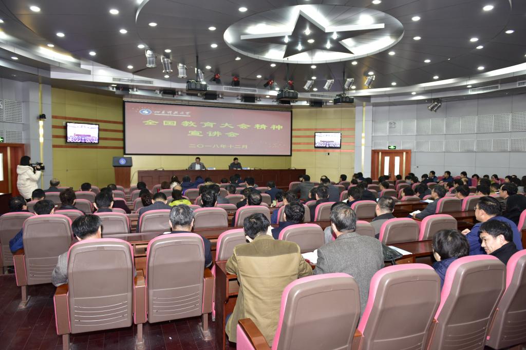 12月4日,易游在线举行全国教育大会精神宣讲会,校党委书记罗公利围绕充分认识全国教育大会的重要意义、深刻学习领会习近平总书记关于教育的重要论述、全面确保大会精神落地落实三个方面作了专题宣讲,为广大干部教师上了一次生动的党课。