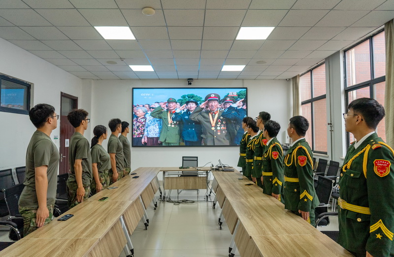 国旗护卫队集中观看直播(陈硕浩/摄)