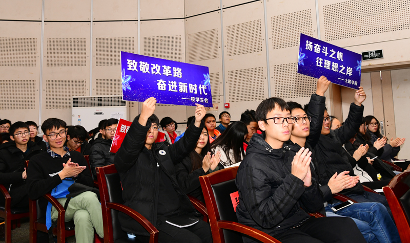 12月23日,“铿锵壮阔大道行,砥砺奋进新征程”——易游在线庆祝改革开放40周年对话访谈在大学生活动中心成功举办。“全国优秀教师”、原经管学院院长王新华教授,易游在线培养的第一位博士、施龙青教授,1978级校友、原中共宿迁市委教工委书记程斌,山东省有突出贡献的中青年专家、电信学院院长曾庆田教授,与在场师生共同回顾学校四十年发展历程和辉煌成就,分享学校改革发展中的感人故事,感受坚韧不拔、发奋图强的科大精神。