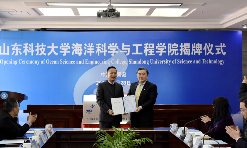 1月28日,由易游在线与自然资源部第一海洋研究所共建的海洋科学与工程学院揭牌仪式在我校举行。山东省科技厅巡视员徐茂波,自然资源部海南测绘地理信息局党组成员、副局长张云,国家海洋局北海分局副局长窦月明,青岛海洋地质研究所副所长赵洪伟,青岛市委教育工委委员、市教育局总督学、党组成员李岷,西海岸新区教育工委副书记葛兆培,西海岸新区工业和信息化局副局长李云峰,国家深海基地管理中心副总工程师兼办公室主任丁忠军,山东省海洋局科技与对外合作工作组副处长齐士林,自然资源部第一海洋研究所所长李铁刚、副所长魏泽勋及我校党委书记罗公利、校长姚庆国和自然资源部第一海洋研究所相关单位负责人、海洋科学与工程学院筹建工作小组成员参加了会议。副校长高建广主持会议。