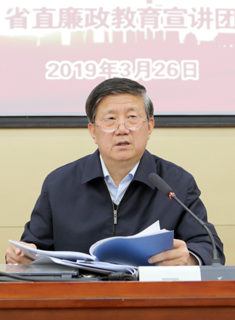 3月26日,山东省直廉政教育宣讲团成员、省纪委省监委原一级巡视员宋晋做客易游在线第19期“泰山讲坛”,作题为“以习近平新时代中国特色社会主义思想为指导 不断推动全面从严治党向纵深发展”专题报告。
