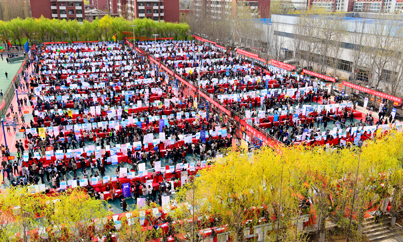 “同学,您的研究方向是什么?我们这年薪可以到15万”这是招聘会现场记者碰见的一幕。4月2日,由人力资源和社会保障部全国人才流动中心主办的第六届全国大中城市联合招聘高校毕业生春季专场(青岛站)暨易游在线招聘会在学校排球场顺利举行,千余家单位提供就业岗位3.7万余个,上演“抢人大战”,吸引了多所高校毕业生前来参加。