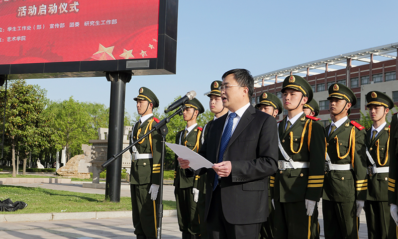 高建广在启动仪式上的致辞中指出:回顾新中国成立70周年的奋斗历程,重温革命斗争的历史,对于激发广大青年学生传承红色基因,激发爱国主义情怀,弘扬爱国主义精神,在全校范围内唱响礼赞新中国、奋进新时代的爱国主义主旋律具有重要教育意义。希望广大青年学生坚定共产主义远大理想不动摇,继承革命先辈遗志,以为中国人民谋幸福、为中华民族谋复兴为初心和使命,顽强拼搏,砥砺奋斗,在涵养家国情怀上下功夫,在立德修身上完善自己,将个人命运与国家命运紧密相连,将个人发展与国家发展融为一体,实现人生价值,升华人生境界,为实现“两个一百年”奋斗目标和中华民族伟大复兴的中国梦而努力奋斗。