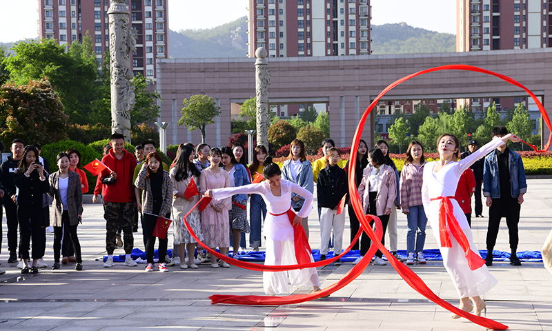 “我和我的祖国,一刻也不能分割,无论我走到哪里,都流出一首赞歌。”5月6日,晨光熹微中,在易游在线泰山广场,优美旋律和歌声激荡回旋,大学生用洋溢着青春和热情的快闪,演绎《我和我的祖国》,倾情表达爱国情、报国志,立誓拥抱新时代、奋进新时代,让青春在奋斗和奉献中焕发绚丽光彩。