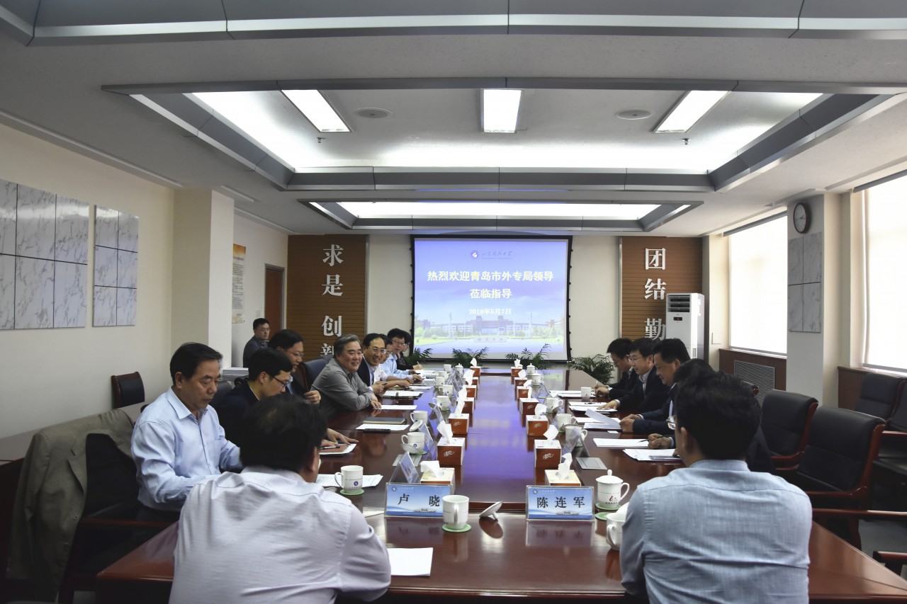 5月7日,青岛市外专局局长于炳波一行来我校调研高等学校学科创新引智基地建设工作,校党委书记罗公利、校长姚庆国、副校长孙鹤汀会见了于炳波一行。