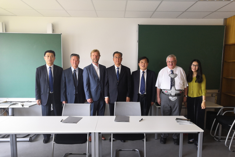 在德国安斯巴赫应用技术大学,校务委员会主席Ing.Ulf Emmerich,经济工程系负责人Nobert Kaiser,应用技术系教授Hans Reimann,语言中心负责人Christian Gebhard及罗滕堡校区负责人Domini Koegel热情欢迎代表团一行。双方回顾了两校十几年来的友好合作历程,并就经济类专业进一步开展硕士合作项目等进行了详细的磋商。6月17日,中德生态园驻德国代表处赵卫及巴伐利亚州对华高教中心主任Philipp Dengel也参与了会谈,两校三方就去年达成共建微校园项目的意向进行了深入探讨并达成了一致意向。代表团在安斯巴赫应用技术大学经济工程系及化工系负责人的陪同下,参观了罗滕堡校区及相关实验室。代表团还与我校在安斯巴赫应用技术大学的学生进行了座谈。