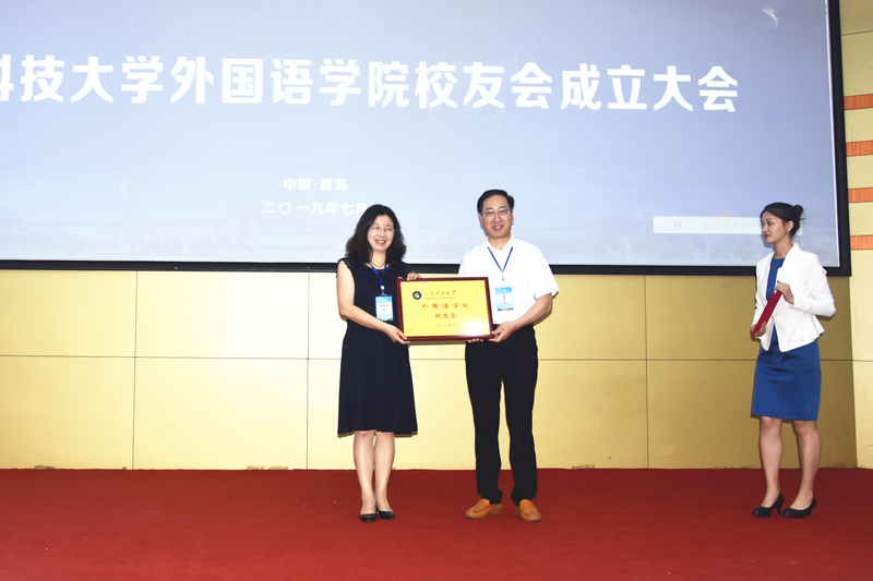 校友代表科技英语1990级、东莞怡力制衣有限公司经理娄吉军,英语2006级1班、潍坊名诺商贸有限公司总经理宋冬青先后发言,英语2001级校友、南京航空航天大学教授徐川还发来祝贺视频,表达对校友会成立的祝贺和对各位领导、老师、校友的美好祝愿。