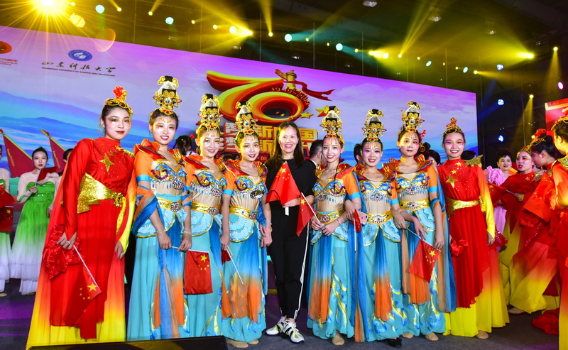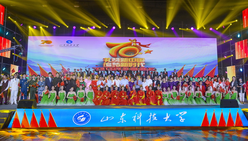 9月29日,学校举行“礼赞新中国 追梦新时代”庆祝新中国成立70周年文艺晚会。校党委领导班子成员罗公利、姚庆国、尹华、李克周、陈涛与近2000名师生共聚一堂,向祖国深情“表白”,共同祝福伟大的祖国繁荣昌盛。