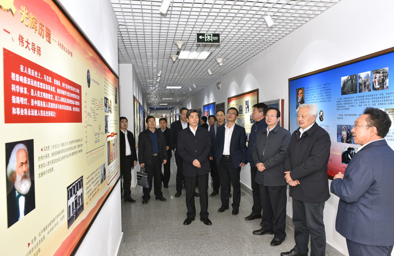 在校党委书记罗公利、副书记尹华的陪同下,指导组一行及指导单位负责人实地调研了马克思主义学院“光辉历程•马克思主义在中国”“领航新时代”文化长廊、综合事务服务中心、机电学院小平科技创新团队党支部、矿山灾害预防控制重点实验室党支部,听取了思想政治工作、学生党支部建设、党建与业务相融合、问题整改落实情况等工作汇报,对我校主题教育开展情况进行了现场指导。