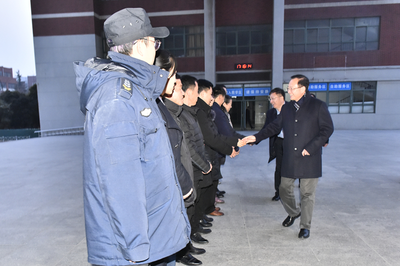 罗公利、张英杰一行先后来到办公楼值班室、南门值班室、教学楼值班室、网络与信息中心、中心变电站、中心换热站、北门值班室、西北门值班室、学术交流中心、风味餐厅快餐店、校医院、西门、山海花园大门值班室、校园监控室等看望慰问在岗职工。每到一处,罗公利、张英杰等都热情地与值班人员一一握手,询问工作情况,并向他们表达节日的问候和新春的祝福,对他们为保证校园安全、让全校教职员工度过一个祥和幸福的春节而放弃节假日坚守工作岗位表示感谢,叮嘱他们要注意安全,安排好春节期间的工作和生活。