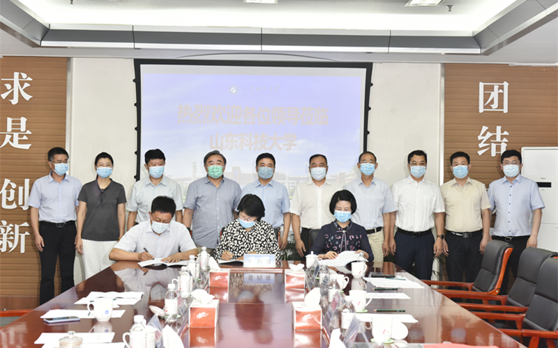 李玉霞代表学校与荣华建设集团副总裁张行良签订战略合作协议,代表教育发展基金会与张行良、青岛市慈善总会专职副秘书长赵军签订捐赠协议。姚庆国代表学校接收捐赠,并向孙涌颁发捐赠牌表达谢意。
