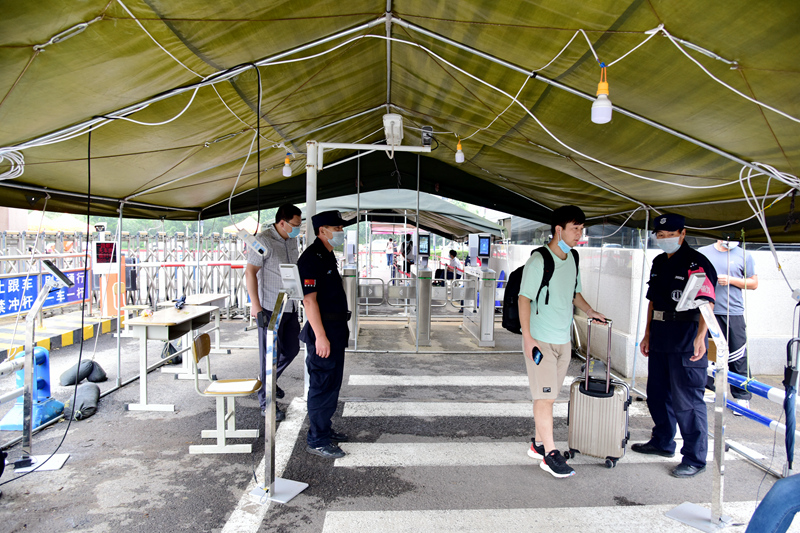 经过返校通道进入校园(范琪/摄)