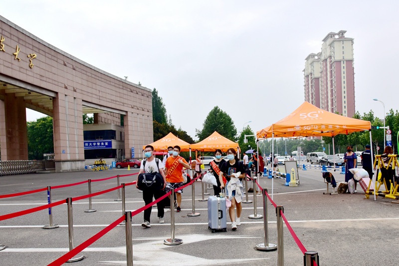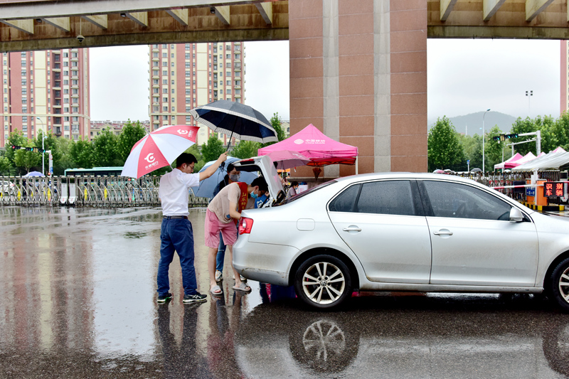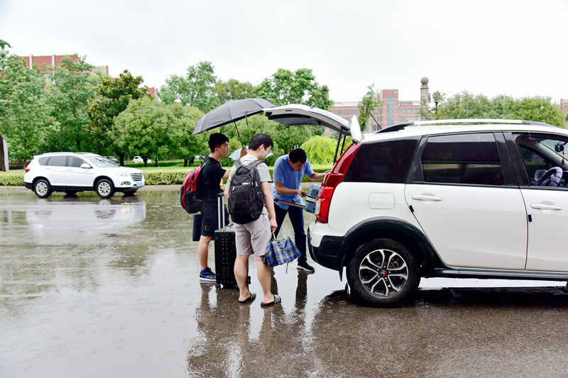 上午10时许,原本淅沥的小雨突然转为瓢泼大雨,为提着大包小包行李前往宿舍的同学们带来了不便,学校原本安排的摆渡车面临巨大压力,无法及时接送学生。为减少同学们淋雨,尽快回宿舍休整,辅导员们自发组成了接送学生车队,驾驶私家车往返于宿舍和南门之间,成了迎接学子们返校的一道靓丽风景线。