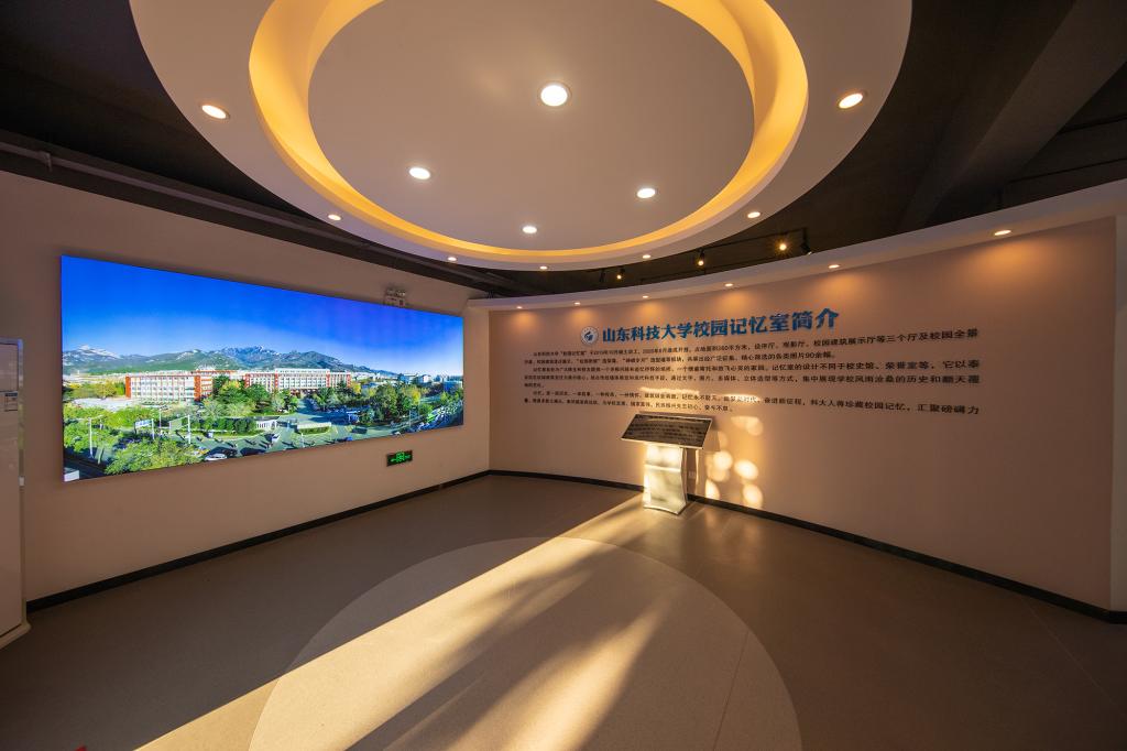 “校园记忆室”坐落泰安校区东校园理化楼北侧,占地面积260平方米,设有序厅、观影厅、校园建筑展示厅等三个厅,布设了校园建筑变迁展示、校园新貌造型墙、“峥嵘岁月”造型墙等板块。记忆室的设计不同于校史馆、荣誉室等,它以泰安校区校园建筑变迁为展示核心,结合传统墙体展览和现代科技手段,通过文字、图片、多媒体、立体造型等方式,集中展现学校风雨沧桑的历史和翻天覆地的变化,旨在为广大师生和校友提供一个寻根问脉和追忆抒怀的场所,一个情感寄托和放飞心灵的家园。
