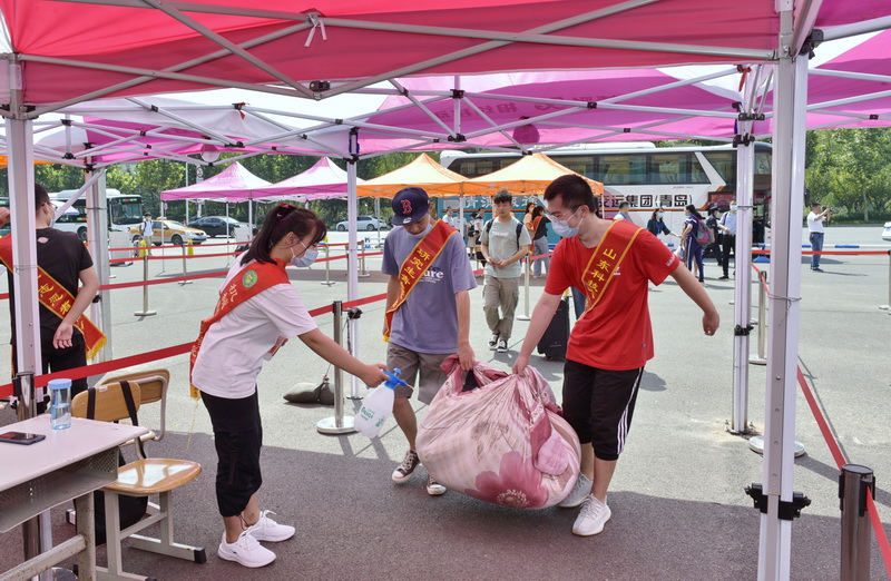 为了方便新生首次入校,学校在青岛火车站、汽车站设置了接站点,在校内也专门安排了摆渡车辆,循环运转于南门报到点和学生宿舍之间,帮助新生搬运行李,每一处细节背后都是无微不至的关怀,大家用心用情的服务,把一股股暖流注入到每一名新生及亲友的心头。