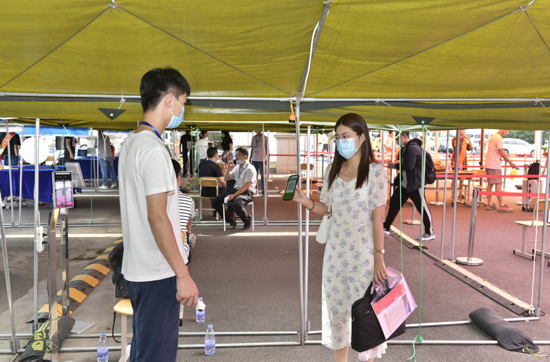 迎新现场,党委学校办公室、研究生院、学生工作处、团委、安全管理处、后勤管理处、网络安全与信息化办公室等部门的工作人员和来自各个学院的志愿者在各自的岗位上忙碌着,认真、耐心地引导帮助新生。体温检测、健康码查验、身份信息核对、物品消杀等环节井然有序,前来报到的研究生“刷脸”报到,所有手续“一站式”解决;工作人员和大学生志愿者认真热情地做好服务工作,为新生答疑解惑、搬运行李,解除新生入校困难……